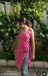 Shikha pink booti printed sleeveless kurti (Only kurti)