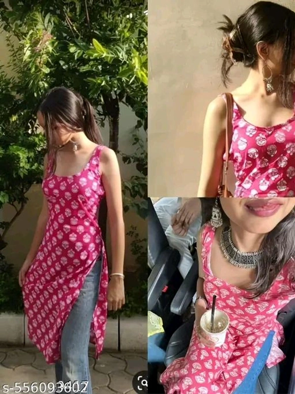 Shikha pink booti printed sleeveless kurti (Only kurti)